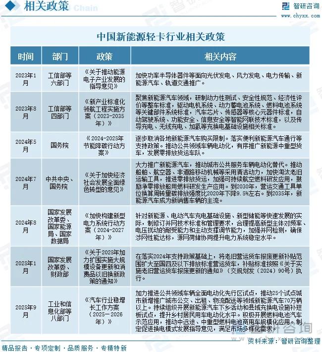 注:本文节选出自智研咨询发布的《研判2025!中国新能源轻卡行业政策、产业链、销量、市场占比及未来前景展望:新能源轻卡市场高歌猛进,前三季度销量达12.19万辆[图]》行业分析文章,如需获取行业文章全部内容,可进入智研咨询搜索查看。