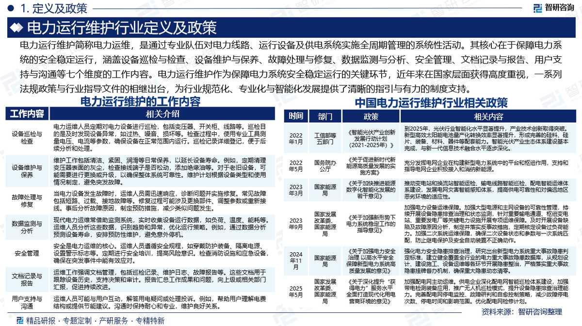基于此,依托智研咨询旗下电力运行维护行业研究团队深厚的市场洞察力,并结合多年调研数据与一线实战需求,智研咨询推出《2026-2032年中国电力运行维护行业市场动态分析及发展潜力研判报告》。本报告立足电力运行维护新视角,聚焦行业核心议题——变化趋势(怎么变)、用户需求(要什么)、投放选择(投向哪)、运营方法(如何投)及实践案例(看一看),期待携手行业伙伴,共谋行业发展新格局、新机遇,推动电力运行维护行业发展。深耕中国电力运行维护领域十余年,智研咨询愿携手行业企业,提供有效信息、专业咨询及定制化解决方案,助力电力运行维护产业持续发展。